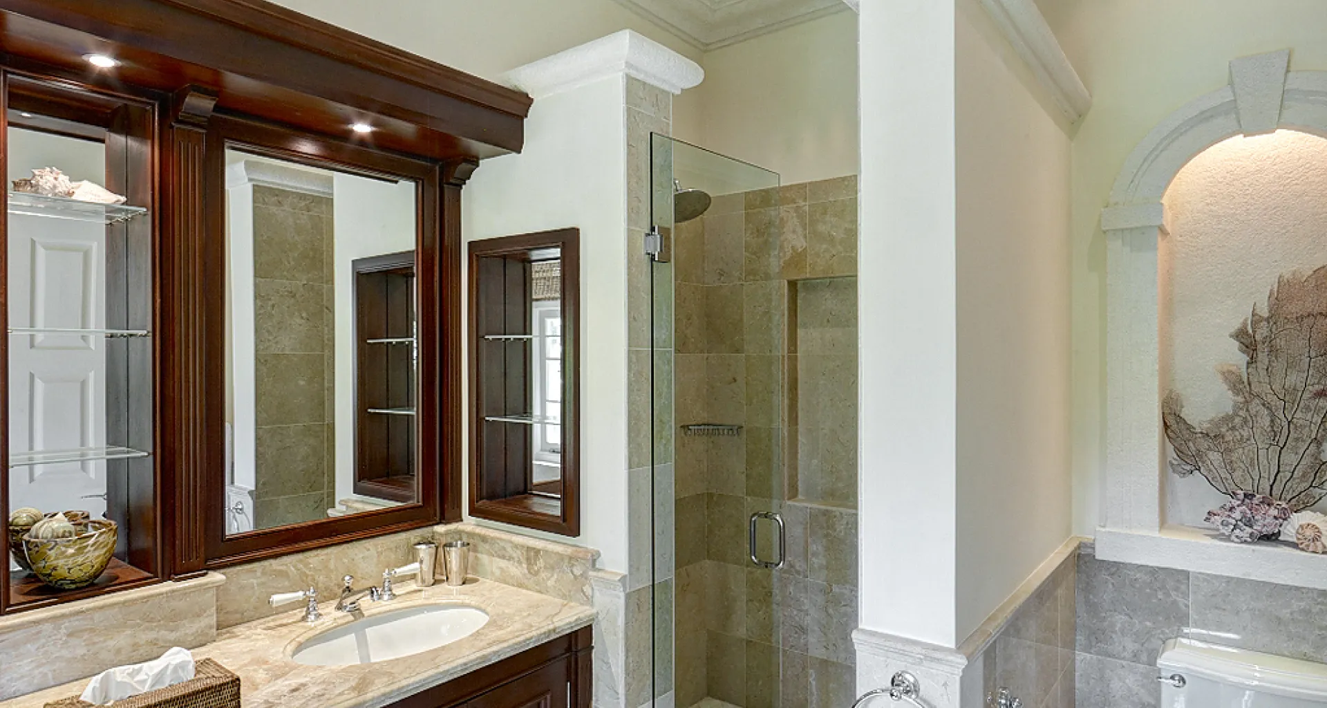 The home’s airy interiors flow effortlessly between indoor and outdoor spaces, highlighting finely detailed woodwork, vaulted ceilings, and natural stone finishes. Every element of its construction was thoughtfully executed to create a timeless residence that balances refined elegance with a relaxed island sensibility.