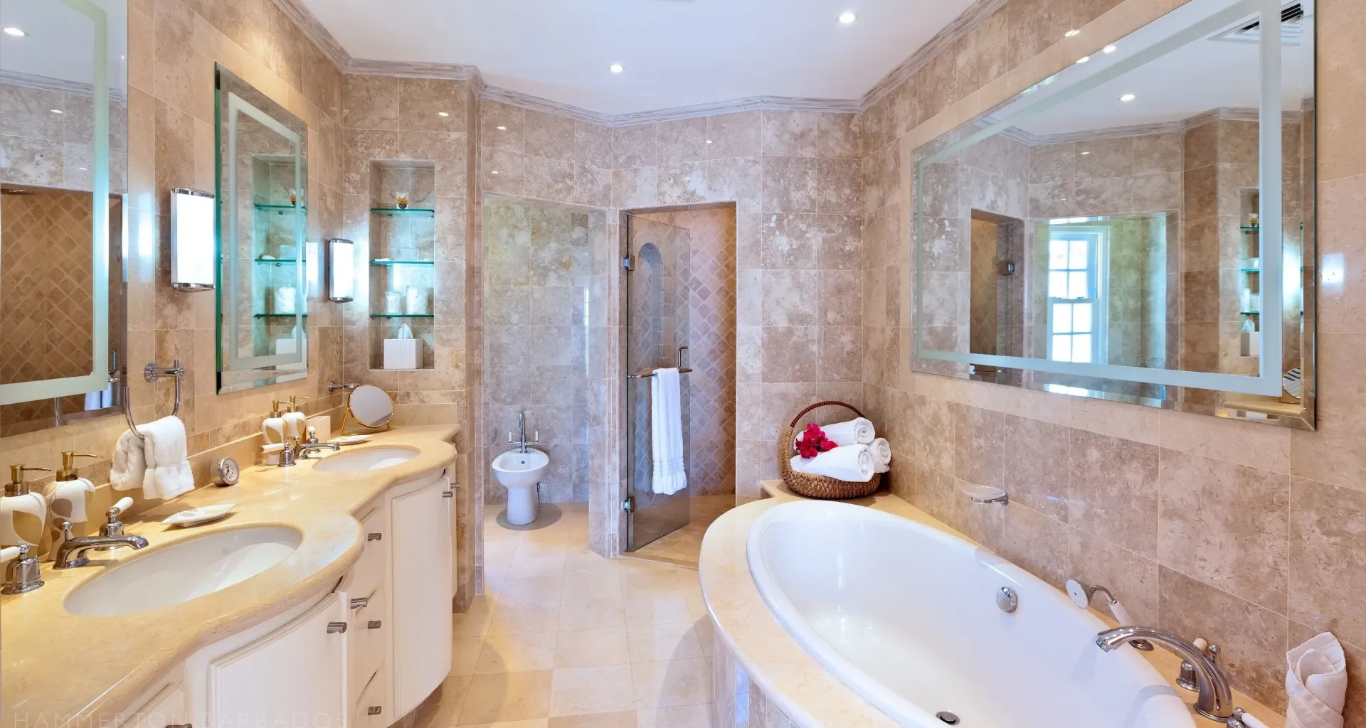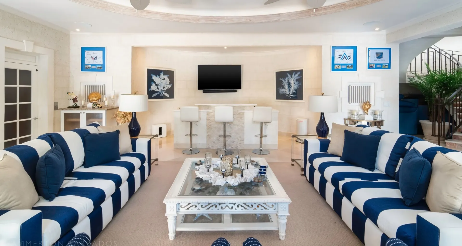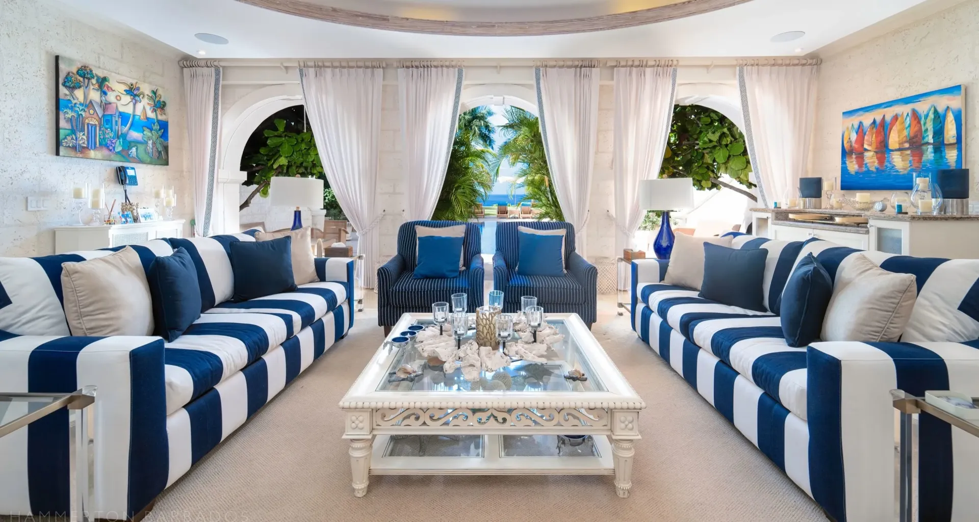 The architecture integrates indoor and outdoor living seamlessly through French doors, covered galleries, and garden pavilions. High ceilings, hand-finished plasterwork, and marble flooring highlight the craftsmanship and structural precision throughout. Thoughtful orientation captures ocean views and natural light, while refined detailing anchors the residence in timeless Caribbean elegance.
