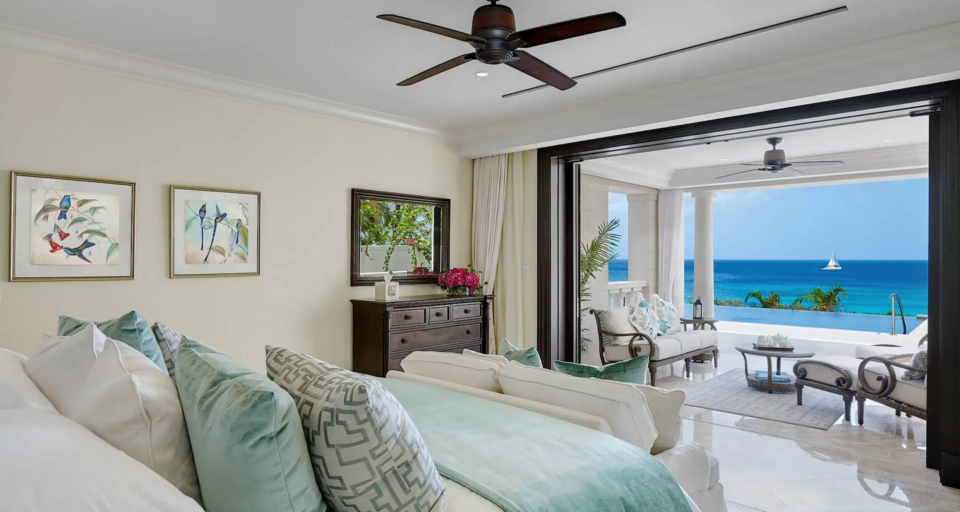 Soaring spaces open effortlessly to sweeping sea views, framed by coral stone walls, wrought iron accents, and elegant chandeliers that elevate its timeless character. Expansive terraces, a sculpted infinity pool, and tailored interior finishes create an atmosphere of understated opulence — a modern interpretation of classic luxury on Barbados’ platinum coast.